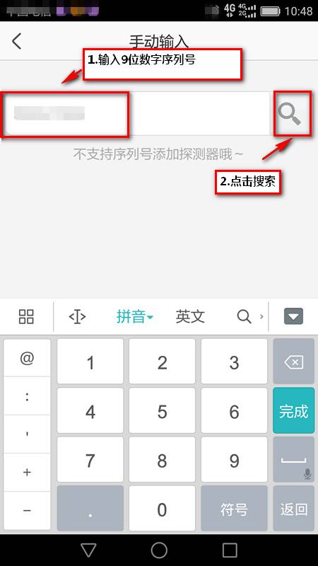 出現(xiàn)手動輸入界面,輸入設(shè)備9位數(shù)字序列號,如下圖所示: