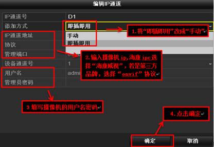 解決方法:通道管理--IP通道中,選擇已有通道,點擊編輯,選擇添加模式“手動添加”。